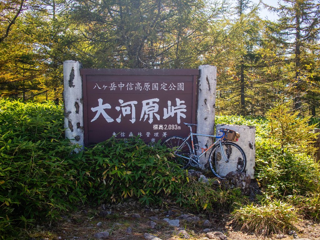 大河原峠へ向けて再スタート。さきほど「トキンの岩」から見えていたくらいなので、あっという間に標高2093mの大河原峠に到着。麦草峠に続き、2000m超えの峠を2つ制覇です。