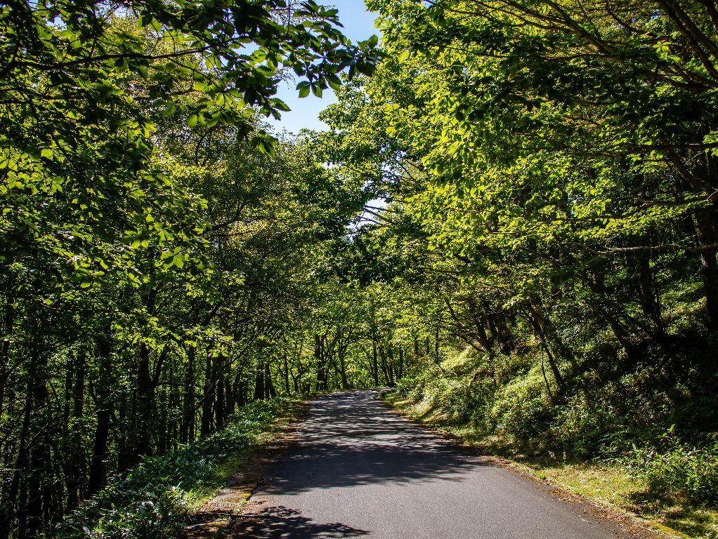 少し登ってきた道を戻り、林道唐沢線からr482へと下っていきます。全線舗装はされているものの、かなり路面が荒れていて、ブレーキングで手が痺れるほどしんどかったですね。コース自体に特に展望はなく、前半は蓼科スカイラインに似た雰囲気で木陰の中を下る感じ、後半はのどかな農村風景でした。