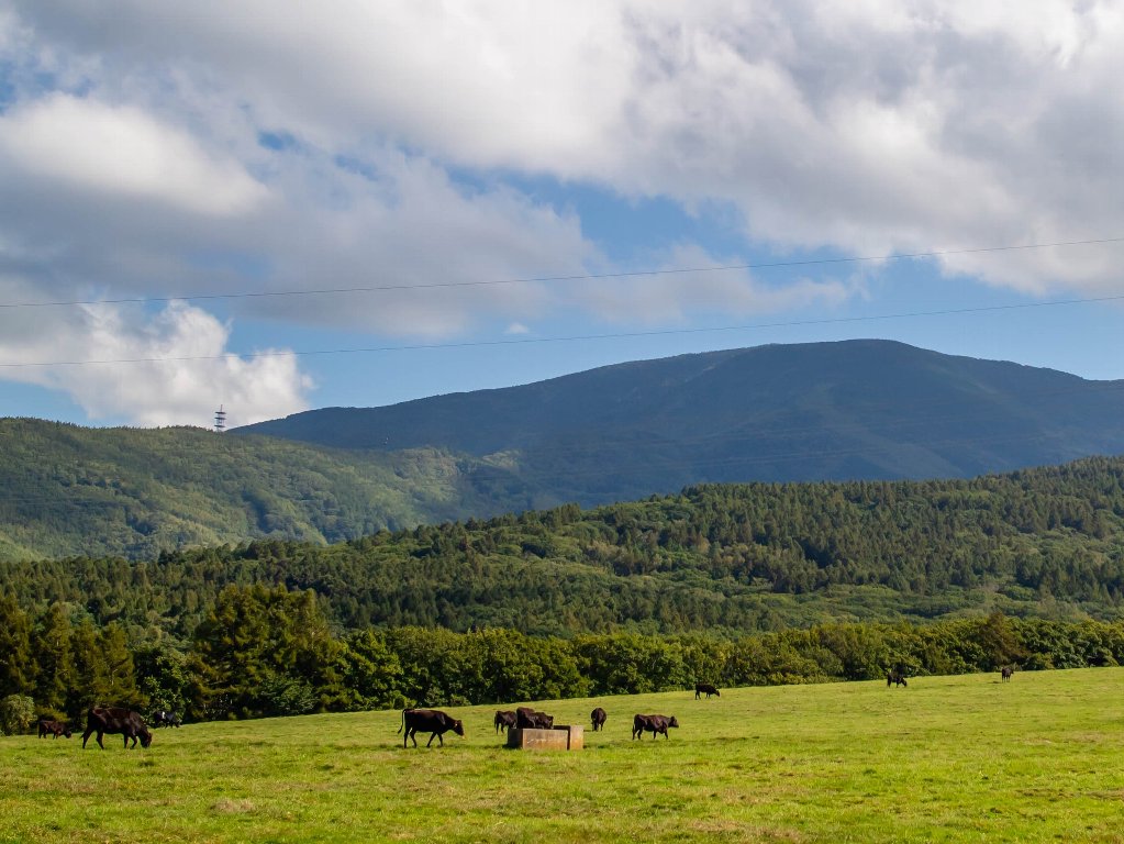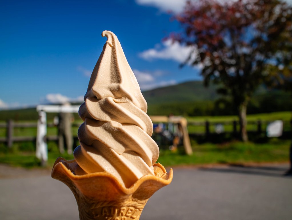 峠手前にソフトクリームののぼりが立っていたので、思わず休憩です。観光用の牧場のようで、しばらく牛さんを眺めながら休憩し、当然ソフトクリームをいただきました。