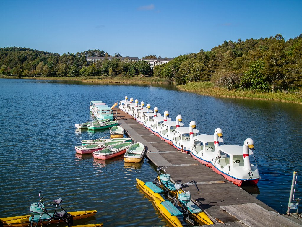 白樺湖ほどの観光地ではありませんが、のんびりと散策するには良さそうな湖です。湖にはお決まりのスワンボートもあります。