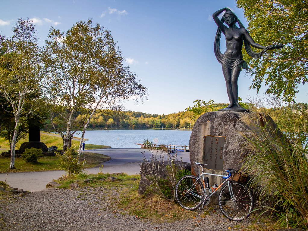 気温は何度くらいでしょうか・・・ベンチに座って白樺湖湖畔のコンビニで買ったパンをいただきますが、ポカポカと暖かく、アームウォーマーを外して半袖でも平気なくらいです。ここが標高2000m超えの峠とは思えません。