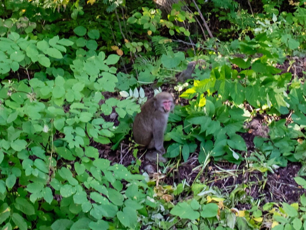 まずは三本滝ゲートまで、勾配5%前後の比較的走りやすい道が続きます。薄い雲はあるものの、ほぼ快晴と言っていい天気。澄んだ空気の中、静かな山道を走っていると、スタート直後にお猿さんが見送ってくれました。(笑)