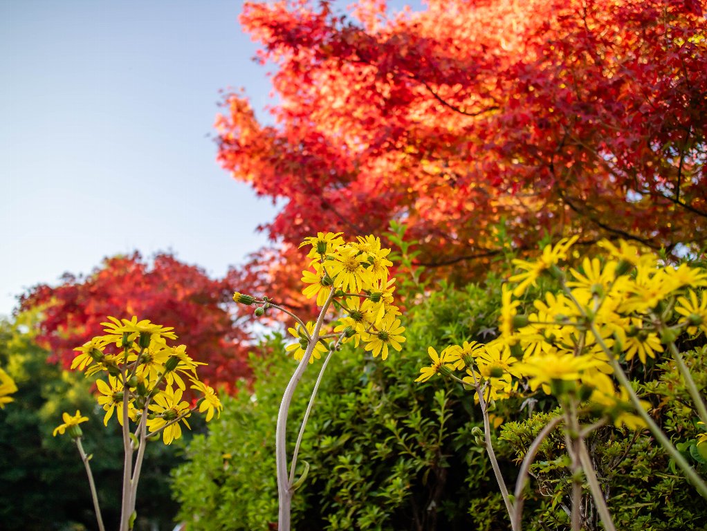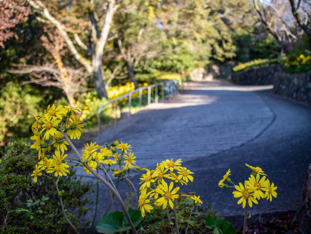 眉山の紅葉もいい感じで色づいてましたが、ツワブキもまだまだ元気に咲いてました。