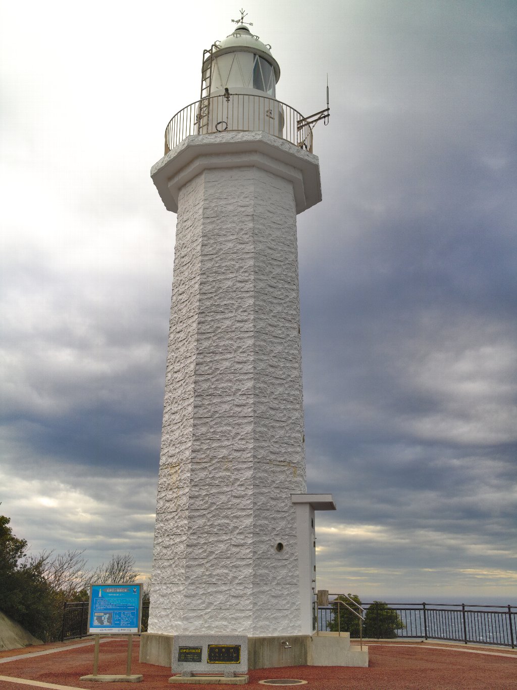 ドライブの最終目的地は本来自転車で向かうはずだった日ノ御碕。岬の先端には2017年に建てられた3代目の美しい日ノ御碕灯台が立っています。最後1kmほどは激坂でした。次回?自転車で来た時の予習ということで、覚えておきましょうね。。。それと自転車だと関係ないですが、駐車場が灯台から結構離れてます。この日みたいな強風だとちょっと辛いかも知れませんね。