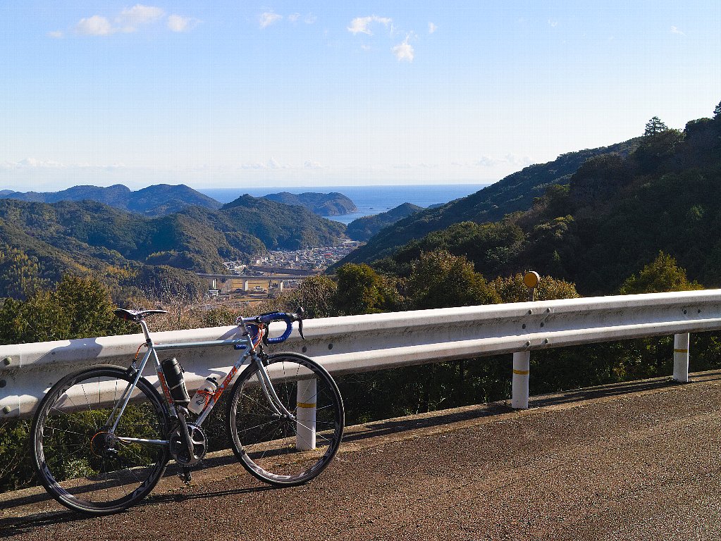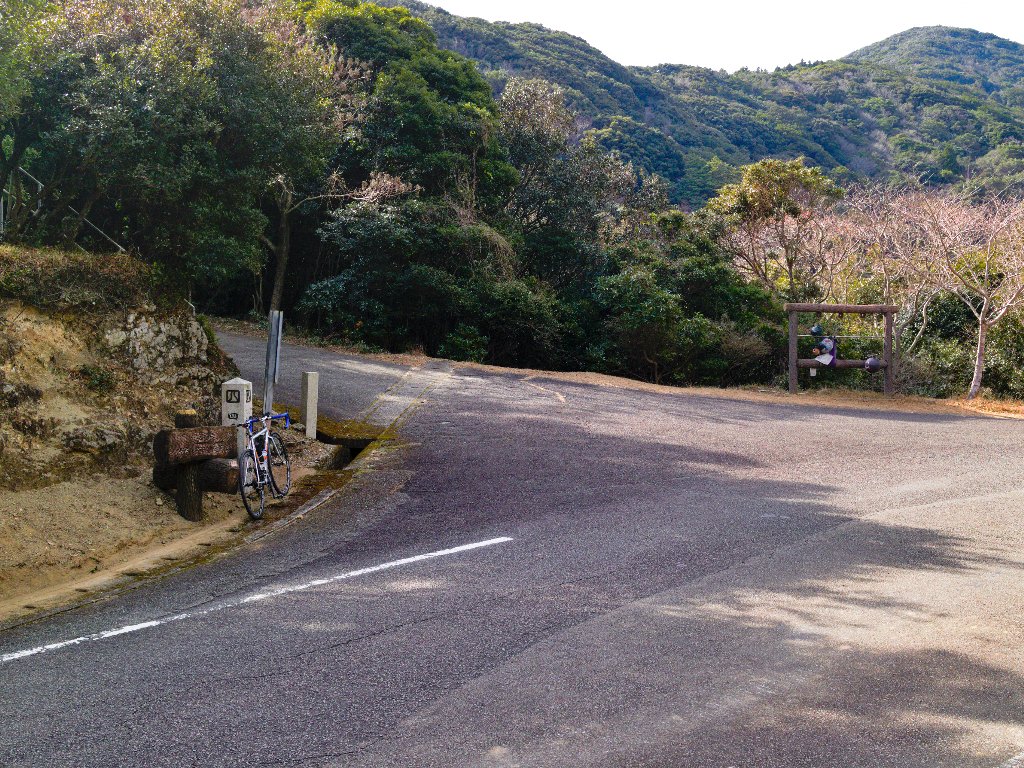 由岐からは新春サイクリングのコースを辿り、山座峠を経て日和佐へ向かいます。山座峠は緩やかで趣があり、個人的にもお気に入りの道。今日のように一人でのんびりペースで走るには最高ですね。これで展望が良ければ言うことなしなのですが。。。