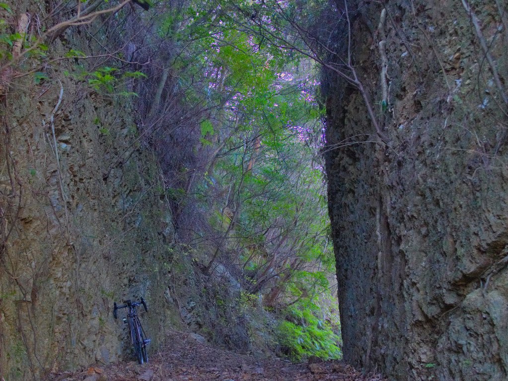 まず向かったのは「曲突(くど)越え」。最近、shinさんが訪れていた場所です。昔、国府のSTで遊んでいた頃の帰りに一度通ったことがある道だったような・・・そんな曖昧な記憶を確かめるべく行ってみました。