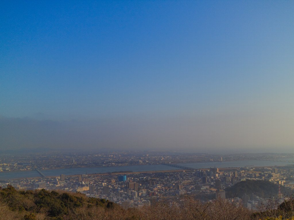 昨日は黄砂の影響で展望が霞んでいたそうですが、今日も相変わらずのぼんやりとした景色。冬晴れのはずの空に、どこか春の気配を含んだ靄がかかっています。