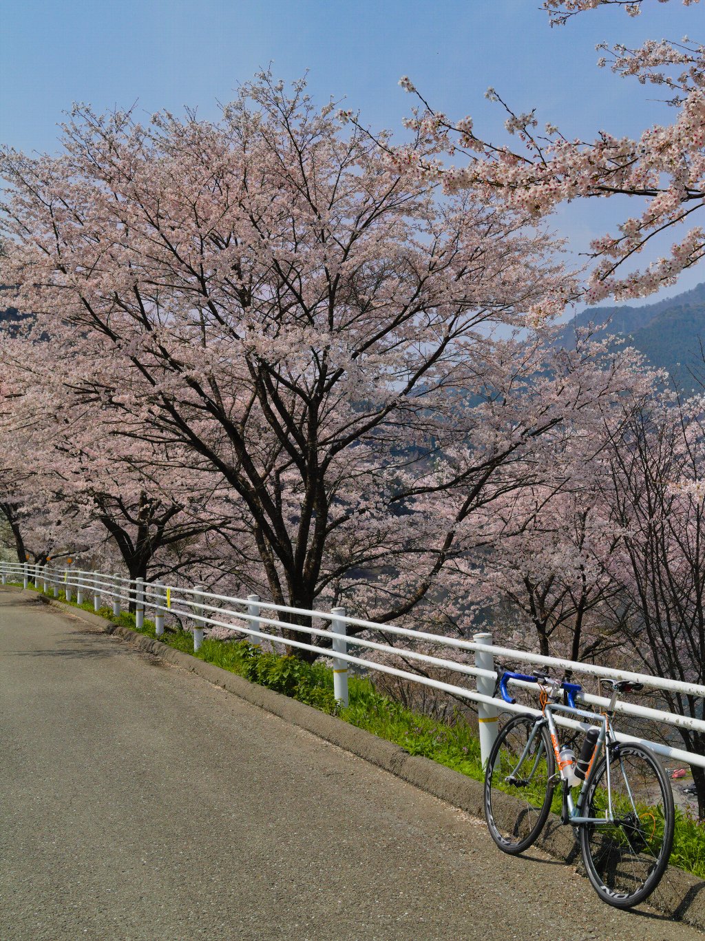 国道と比較して車の数は圧倒的に少なく、道沿いに続く桜を眺めながら走るのが実に心地よいです。“流し見”で楽しむなら、一本桜よりもこうした桜並木の方が向いていますね。別枝大橋から大渡ダム区間にかけては、特に見事でした。