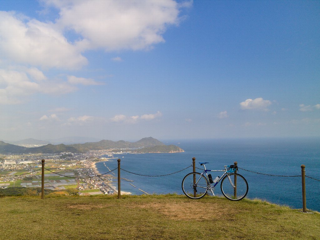 今日は大窪寺には向かわず、そのまま市場方面へ下ります。コンビニで小休止後、広域農道を東へ。ここからは待望の追い風です。時刻はすでに10時を過ぎ、気温もぐんぐん上昇。アームウォーマーとベストを外し、完全な夏仕様に。まだ4月とは思えない陽気です。