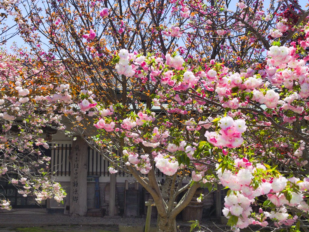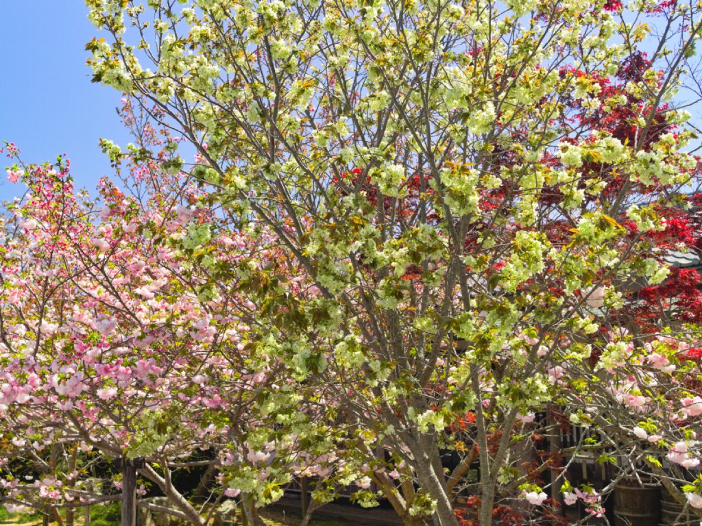 上板まで戻ったところで、この日の目的地「岡田製糖所」へ。目当ては八重桜と御衣黄桜です。