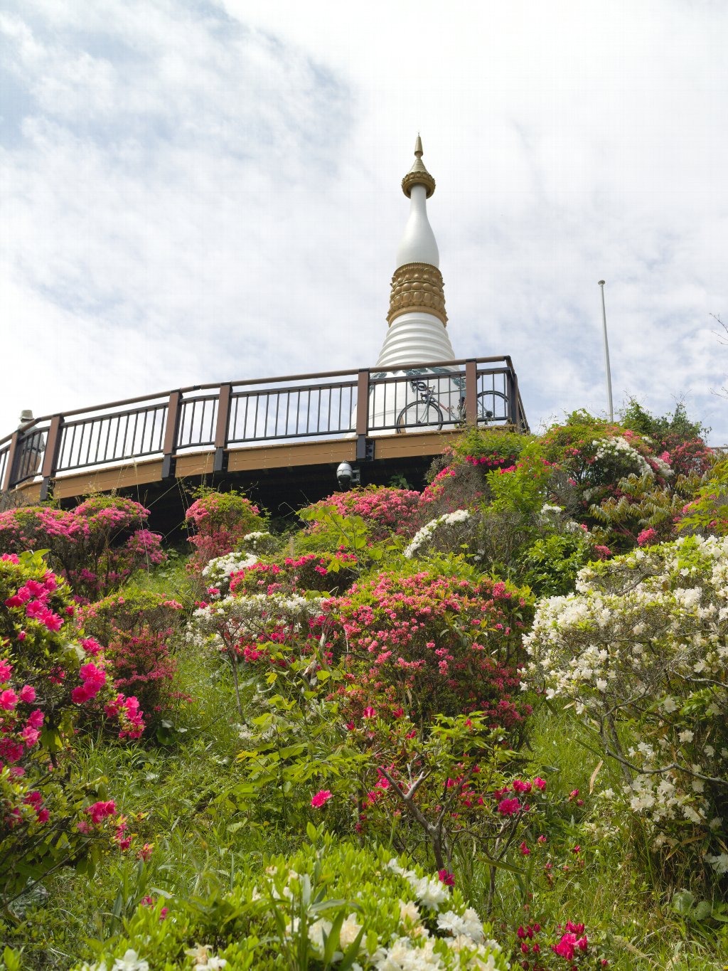 折り返して展望広場まで登ると、そこには桜の季節に代わって、今度はツツジが彩りを添えてくれています。