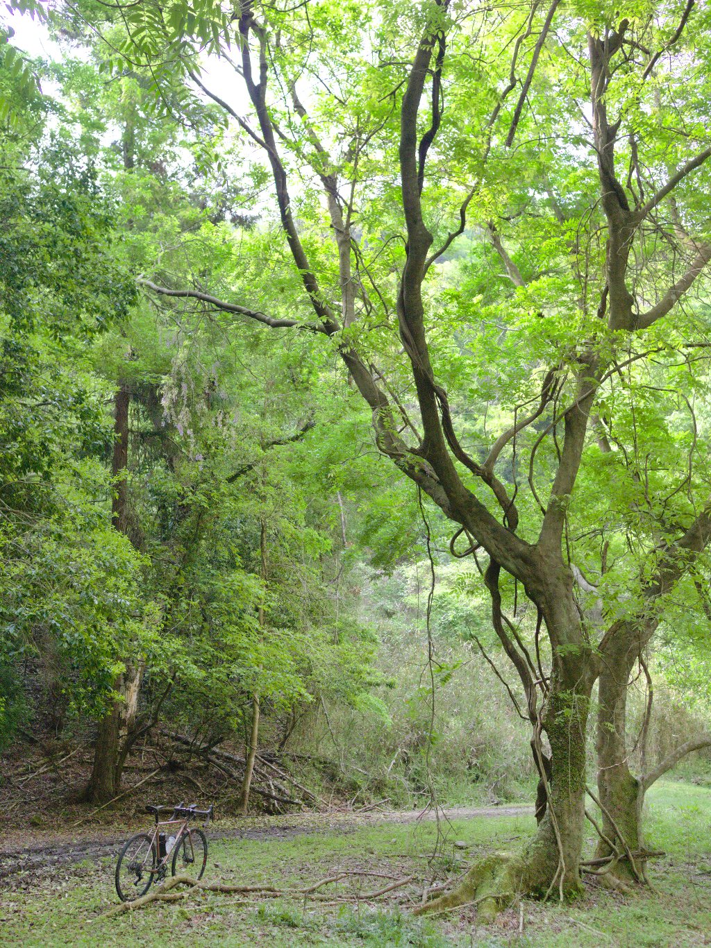 今回は曲突越えは避け、新童学寺トンネルを抜けて石井町へ。そこからは国道を外れ、山際の静かな道を走り鴨島方面へと向かいます。梨の木峠手前で、脇に入る名もなき林道へ。何度か走っている道ですが、相変わらず車の気配はなく、緩やかな斜度で淡々と走れる心地よさがあります。