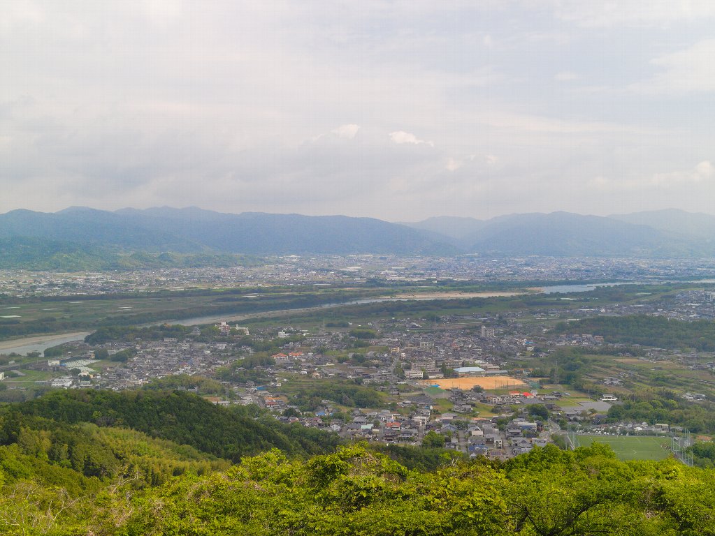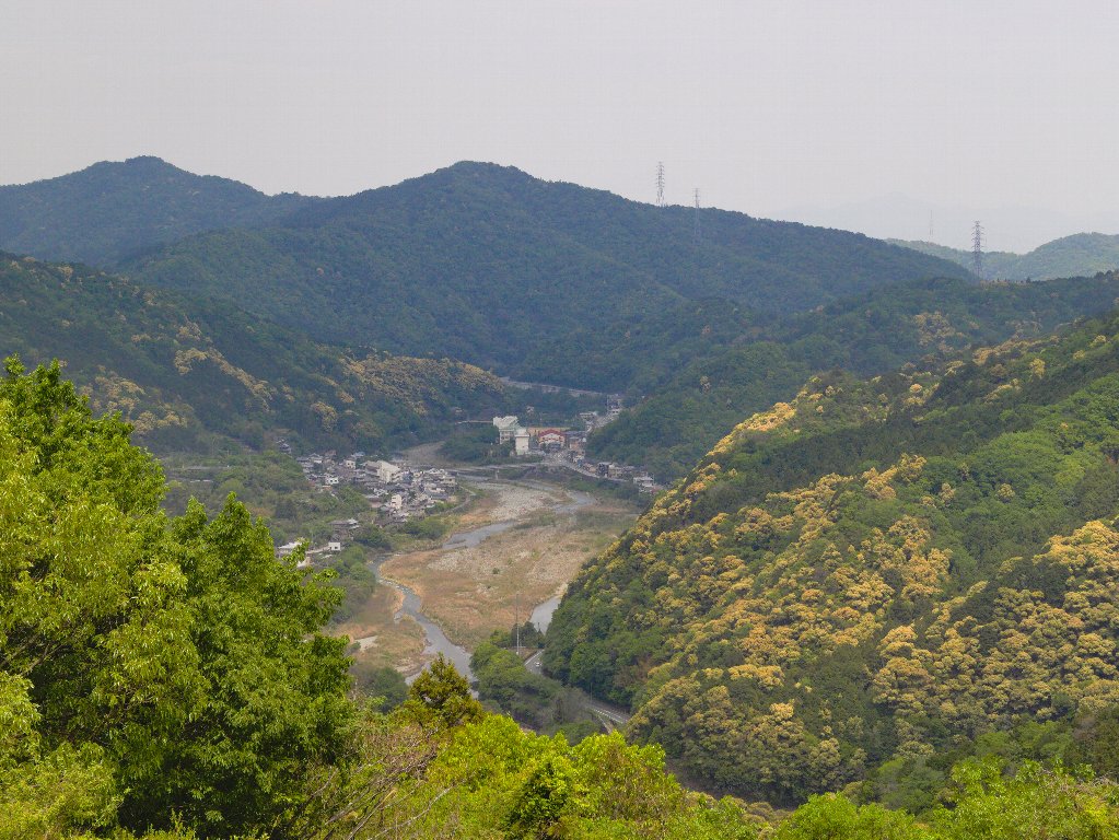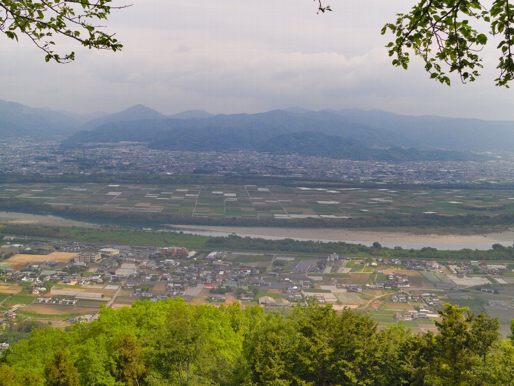そして掘割峠へ。以前は木々に遮られていた眺望も、どうやら伐採が入ったようで以前のように開けていました。あいにくの曇り空で、善入寺島のパッチワークは少し霞み気味。それでも、やはりこの場所からの展望は格別です。